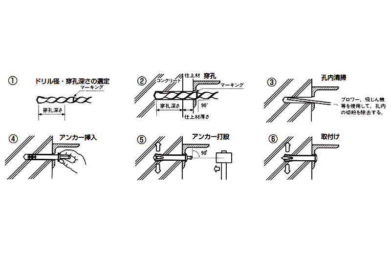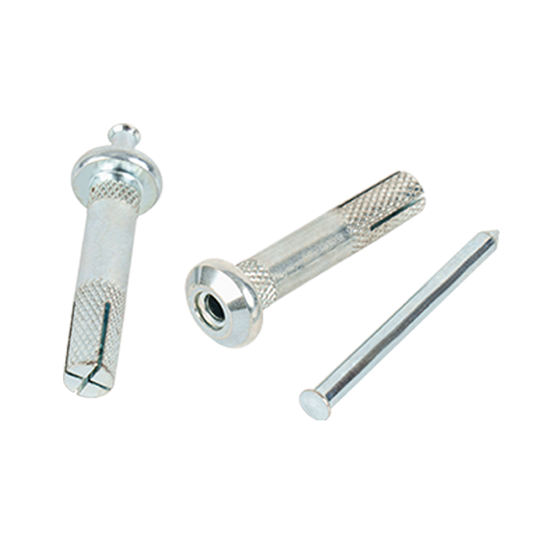 लंगर में नाखून पर प्रहार करके लंगर सेट करना। नाखून कंक्रीट में हिट एंकर का विस्तार करता है ताकि लिड्स को जकड़ सकें। एक स्क्रूलेस एंकर लिड्स और लाइटवेट ऑब्जेक्ट्स को संलग्न करने के लिए उपयुक्त है ।